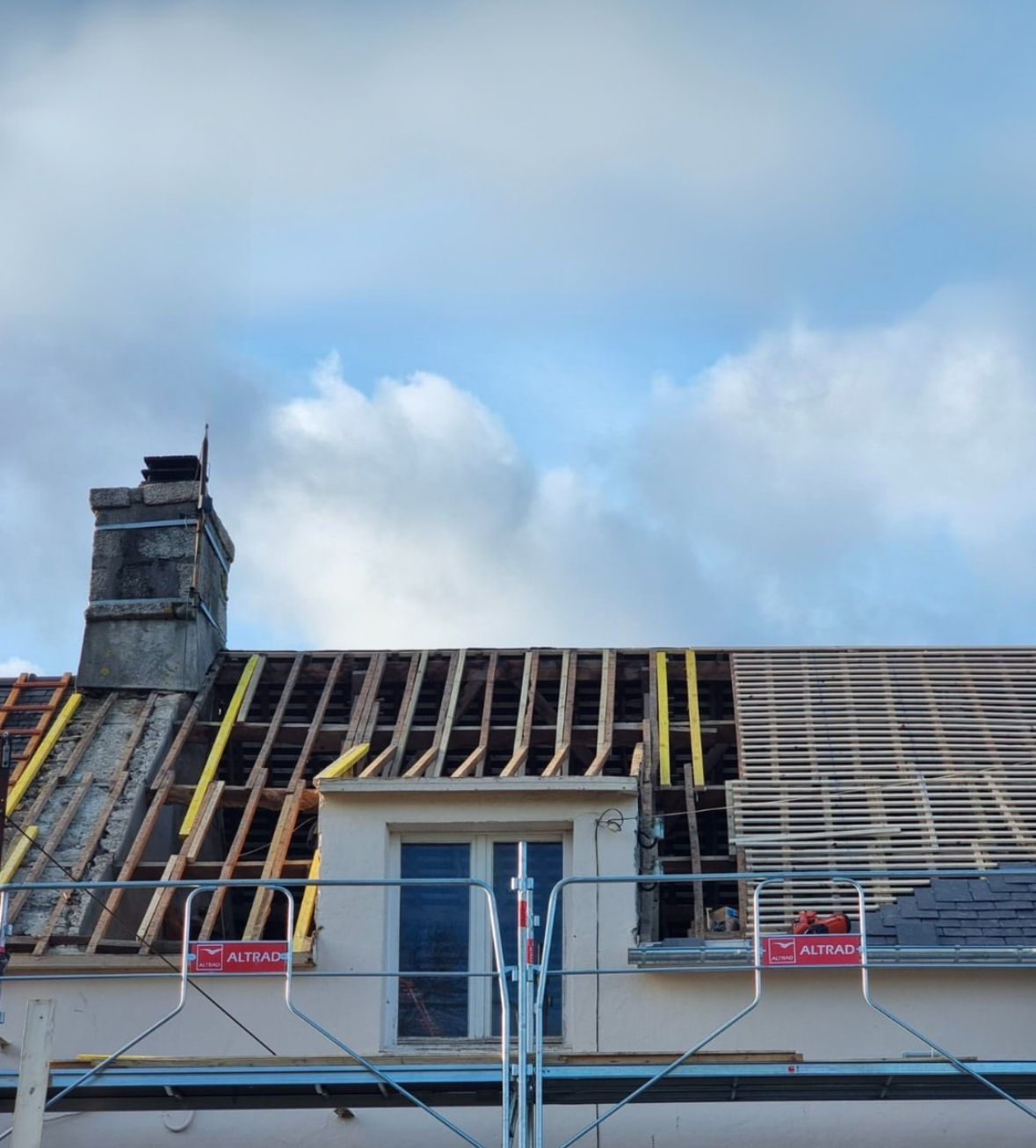 Nous avons remplacé la charpente endommagée, posé de nouvelles tuiles mécaniques et refait la zinguerie autour des fenêtres de toit.
